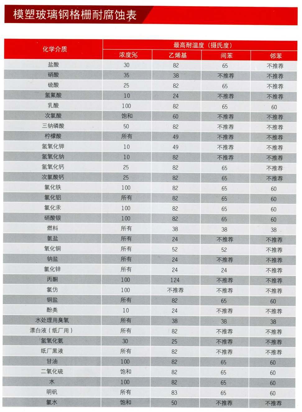 树脂性能的不同赋予玻璃钢不同的耐腐蚀性能,使在不同酸碱、盐、有机溶剂的气、液介质的腐蚀环境下长期使用。